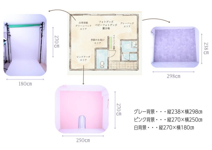- 白背景・・・縦270×横180㎝